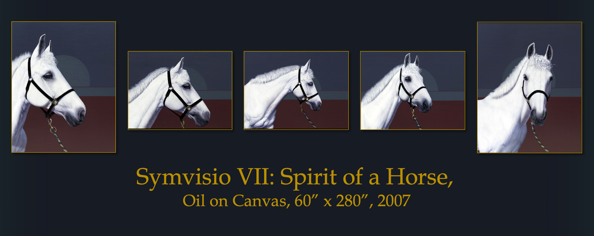 I had a dream in which I had a conversation with the famous French painter Pierre-Auguste Renoir. He pointed to me and said: “You are a painter only when you can paint, not the horse, but its spirit.” When I woke up, I considered that the mission of my Symvisio VII, and found the spirit of a horse in the way a horse, which I met in Woodside, Ca., turned is head and looked at me.